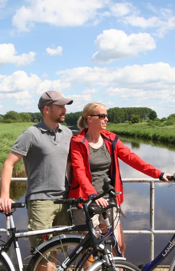 Ab Nienburg führt Sie der Weser-Radweg am Hafen über die Weserbrücke bis Drakenburg. Vorbei am Schiffsanleger geht die Reise über Marklohe weiter nach Drakenburg. In Drakenburg ist das Altdorf mit dem Weserrenaissance-Torbogen und der Johannis-der-Täufer-Kirche von Bedeutung. Weiter geht die Fahrt wesernah in Richtung Eystrup und Hoya. Über die Weserfähre Schweringen-Gandesbergen wechselt die Route wieder auf die linke Weserseite und führt über Bücken, Hoya und Dörverden. In Döverden locken die Kirche und die Galerie-Holländerwindmühle. Links entlang der Weser radeln Sie weiter über Magelsen und Oiste zu Ihrem Etappenziel, der Reiterstadt Verden.